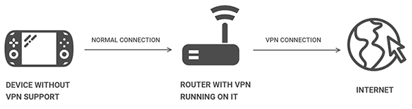This is our favorite way of solving that problem. Basically, if you configure a VPN to run on a router, any device connected to that router will use the VPN connection when going online. It’d look something like this: